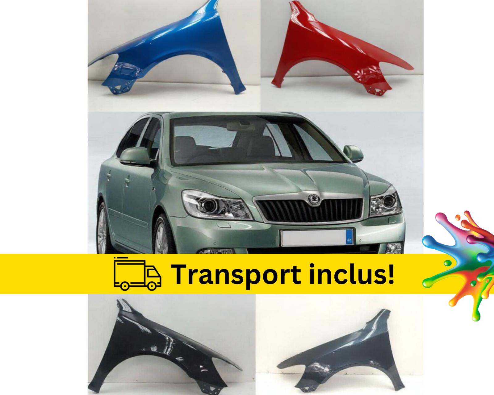 Aripa fata Skoda Octavia 2 1Z3 1Z5 2008-2013 FSL Negru Gri Albastru Alb Maro vopsita la culoarea masini